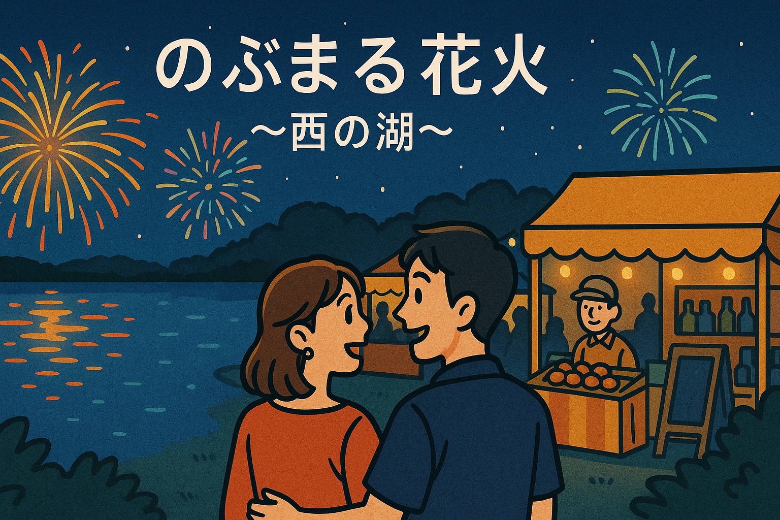 2025年秋の夜空を彩る幻想的なイベント「のぶまる花火 ~西の湖~ / ナイトマルシェ」が、